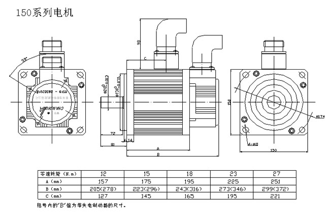 | 電機(jī)型號(hào) | 150SM12030 | 150SM15025 | 150SM18020 | 150SM23020 | 150SM27020 |